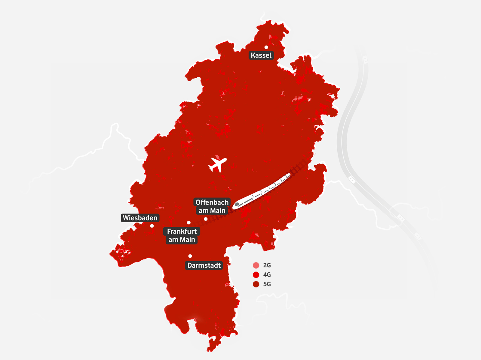 Neben Ebbelwoi und grüner Soße ist Digitalisierung eine hessische Spezialität. Mit mehr als 2 Millionen Gigabit-Anschlüssen von Vodafone schreitet Hessen bundesweit gigaschnell voran. Hessen ist nicht nur bei regionalen Spezialitäten eine sichere Bank, sondern hat auch Datenhunger: Allein hier rauschten 2024 knapp 303 Mio. Gigabyte Daten durchs Vodafone-Mobilfunknetz. Das ist ein Plus von 58 % gegenüber dem Vorjahr - und der höchste Zuwachs deutschlandweit. Möglich macht das unser leistungsstarkes Multilayer-Netz, zukunftssichernde Glasfaser- und 5G-Technologien – verknüpft mit 4G|LTE und IoT.